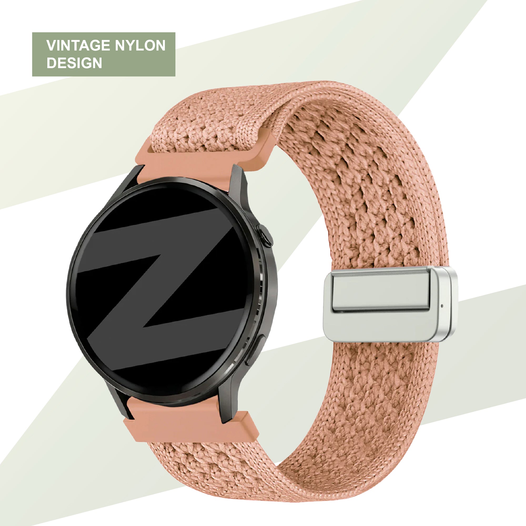 Enhance the look of your smartwatch with this vintage nylon strap in a charming antique pink shade. Its timeless design suits both casual and active lifestyles.
