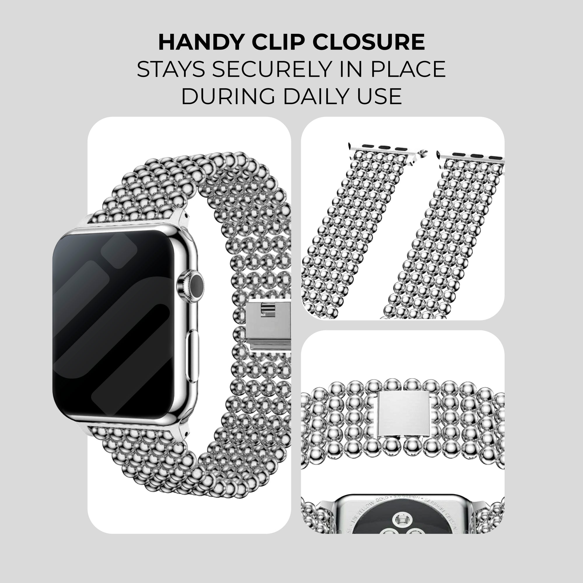 Apple Watch Beaded Steel Strap (Silver)