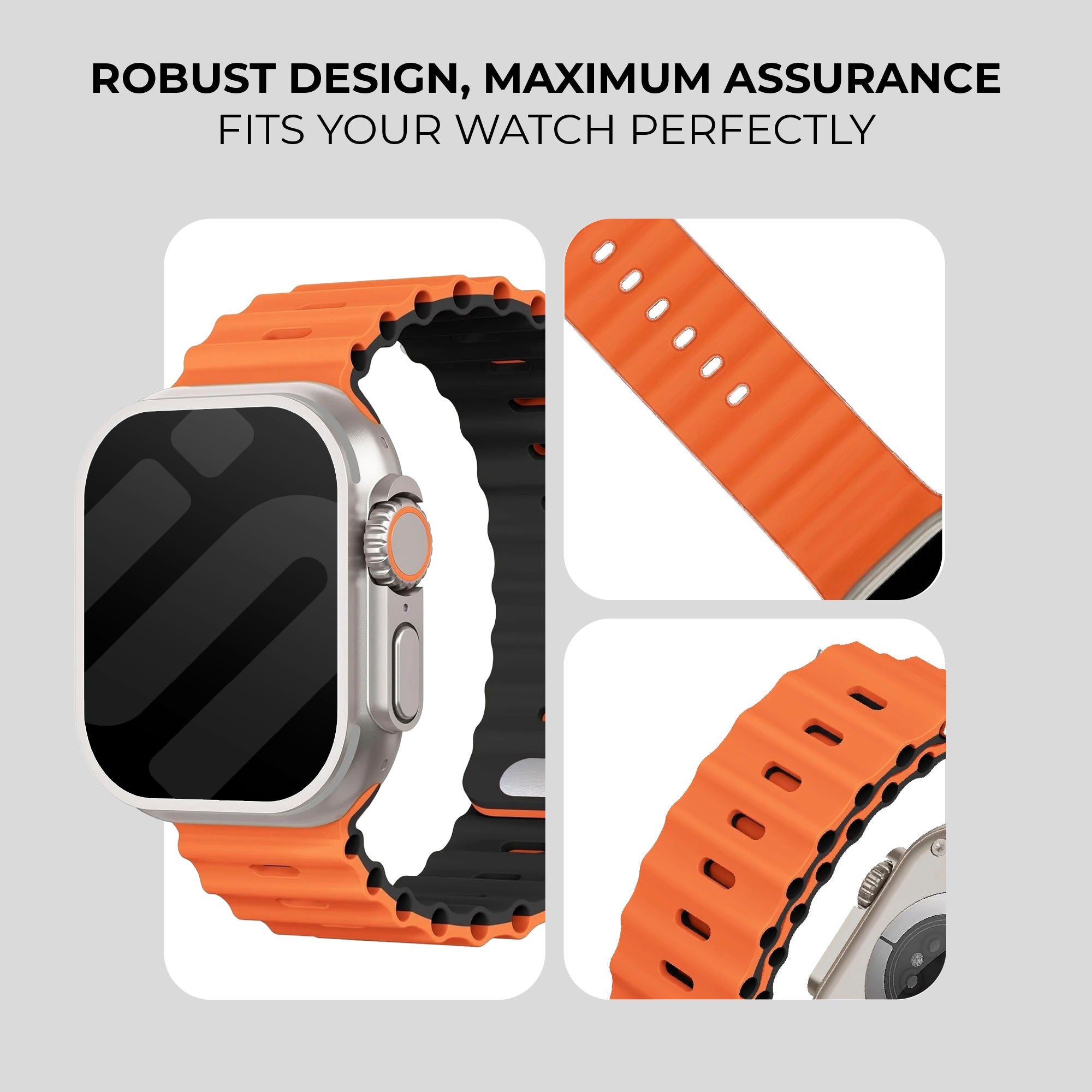 Apple Watch Ocean Strap with Snap Closure (Orange/Black)