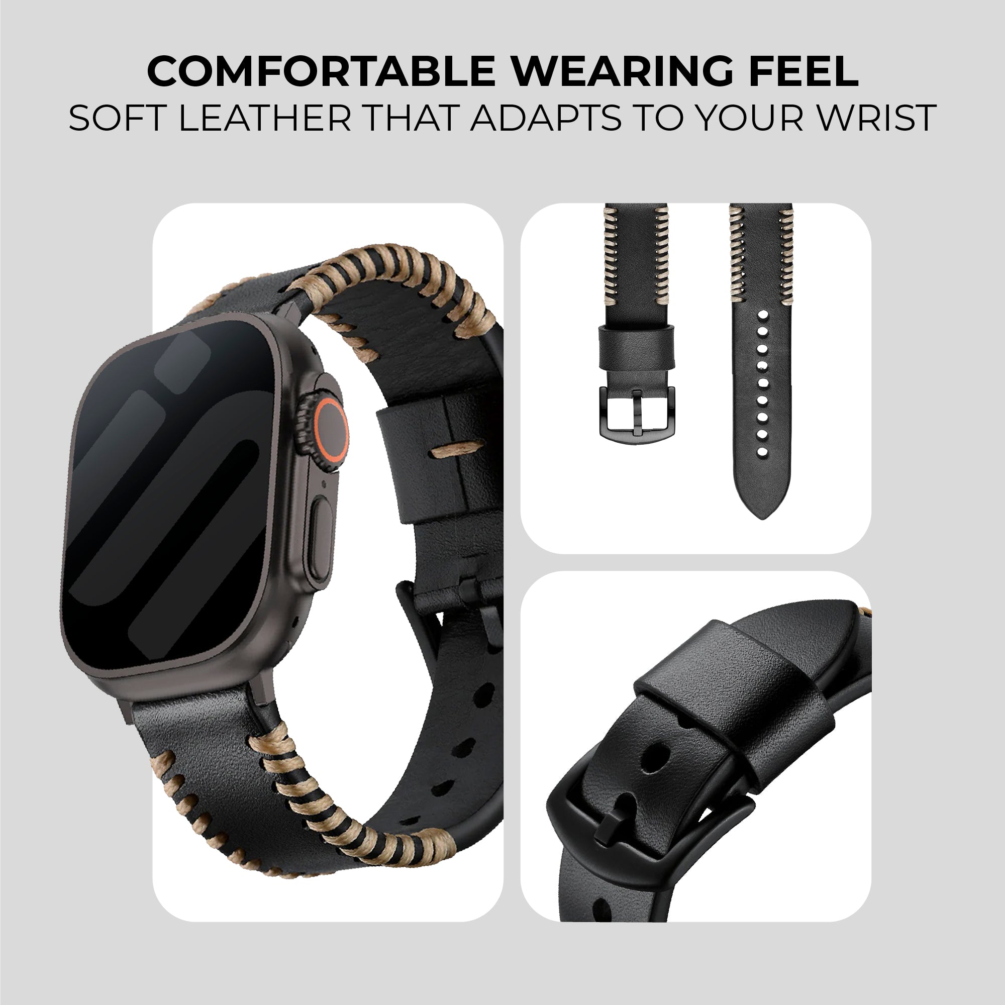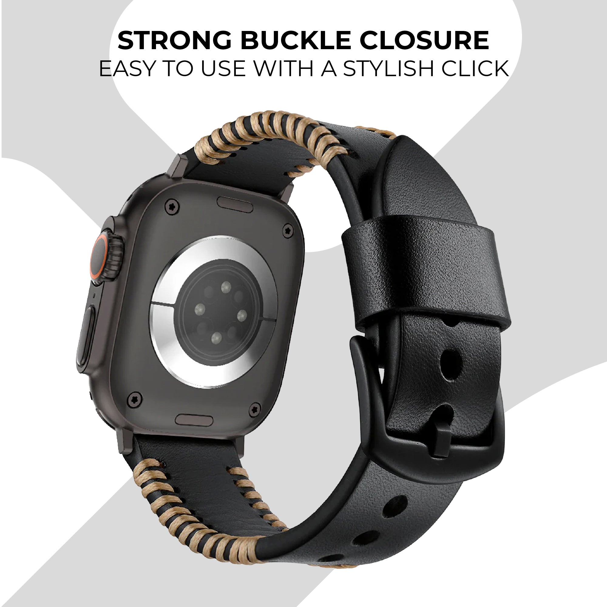 Apple Watch Stitched Leather Strap (Black)Apple Watch Stitched Leather Strap (Black)
