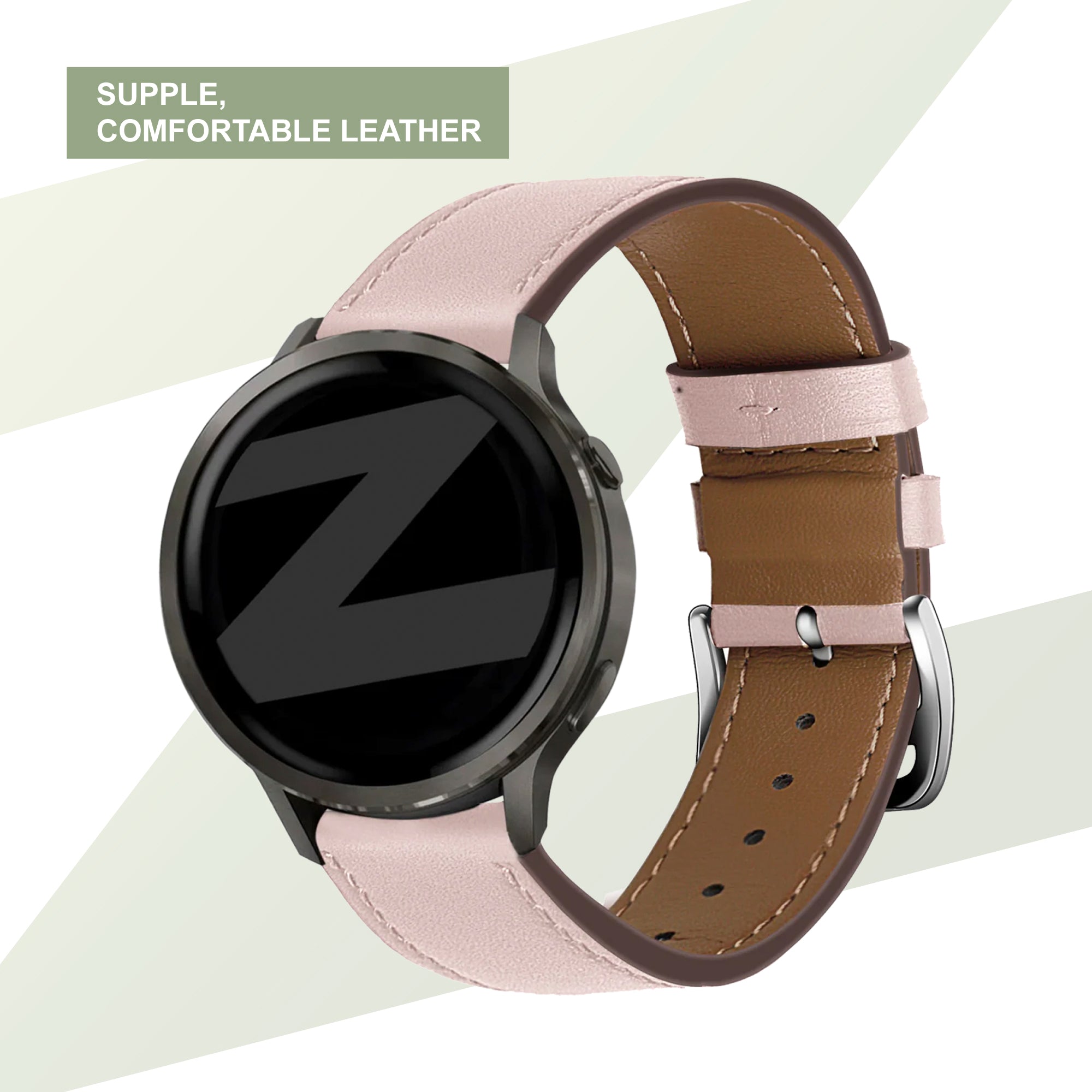 Bandz Garmin Forerunner 570 - 42mm Leather Strap 'Deluxe' (Pink)