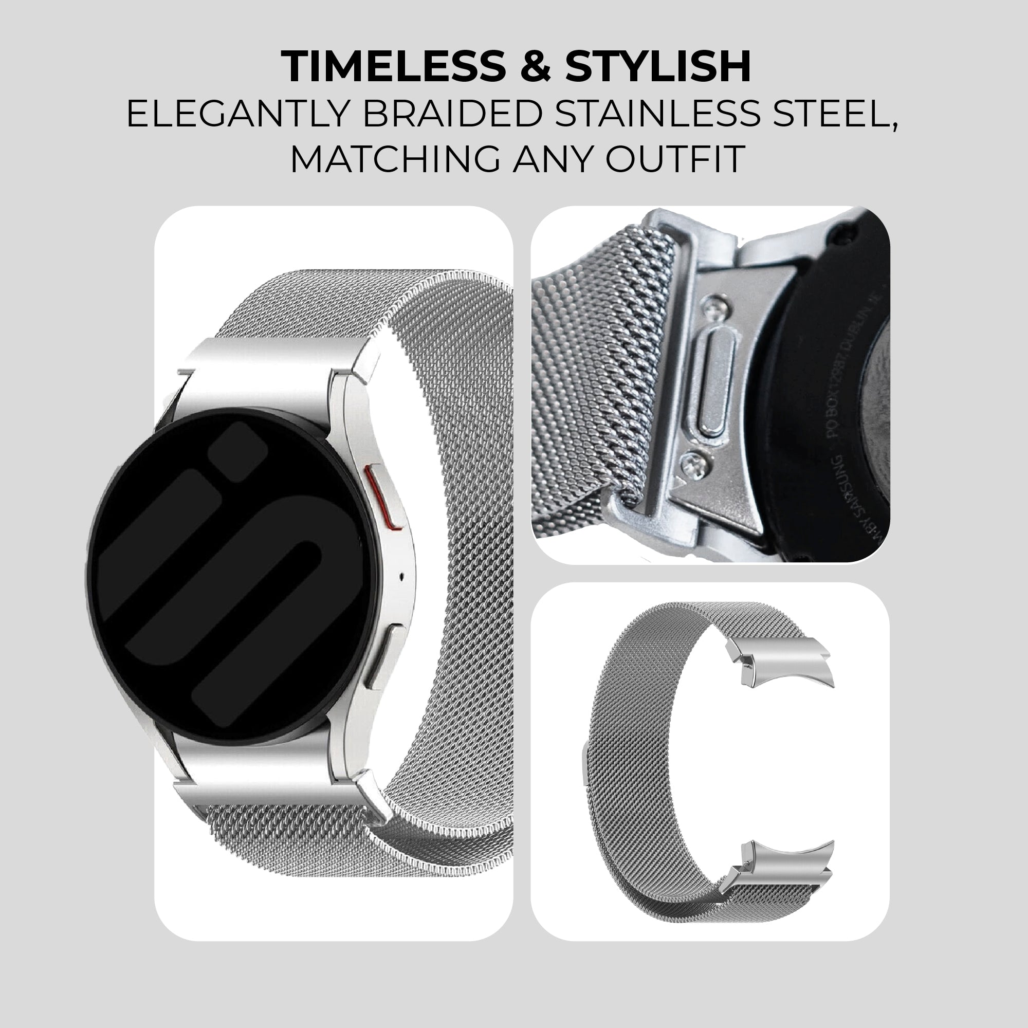 Samsung Galaxy Watch 5 Pro 'One push' Milanese Strap (Silver)