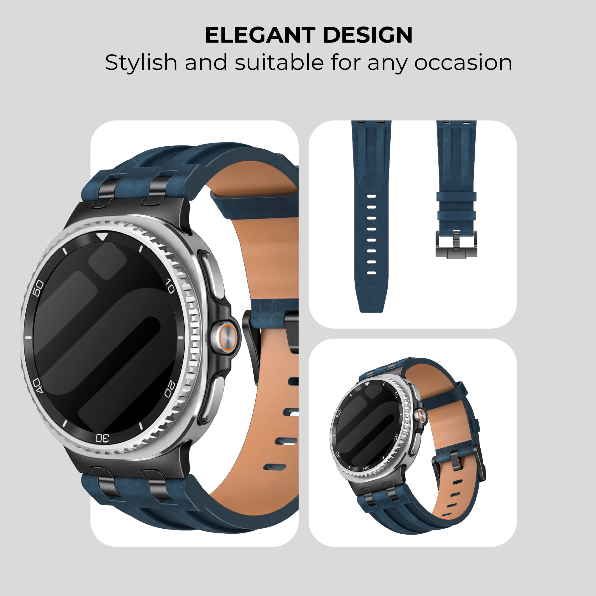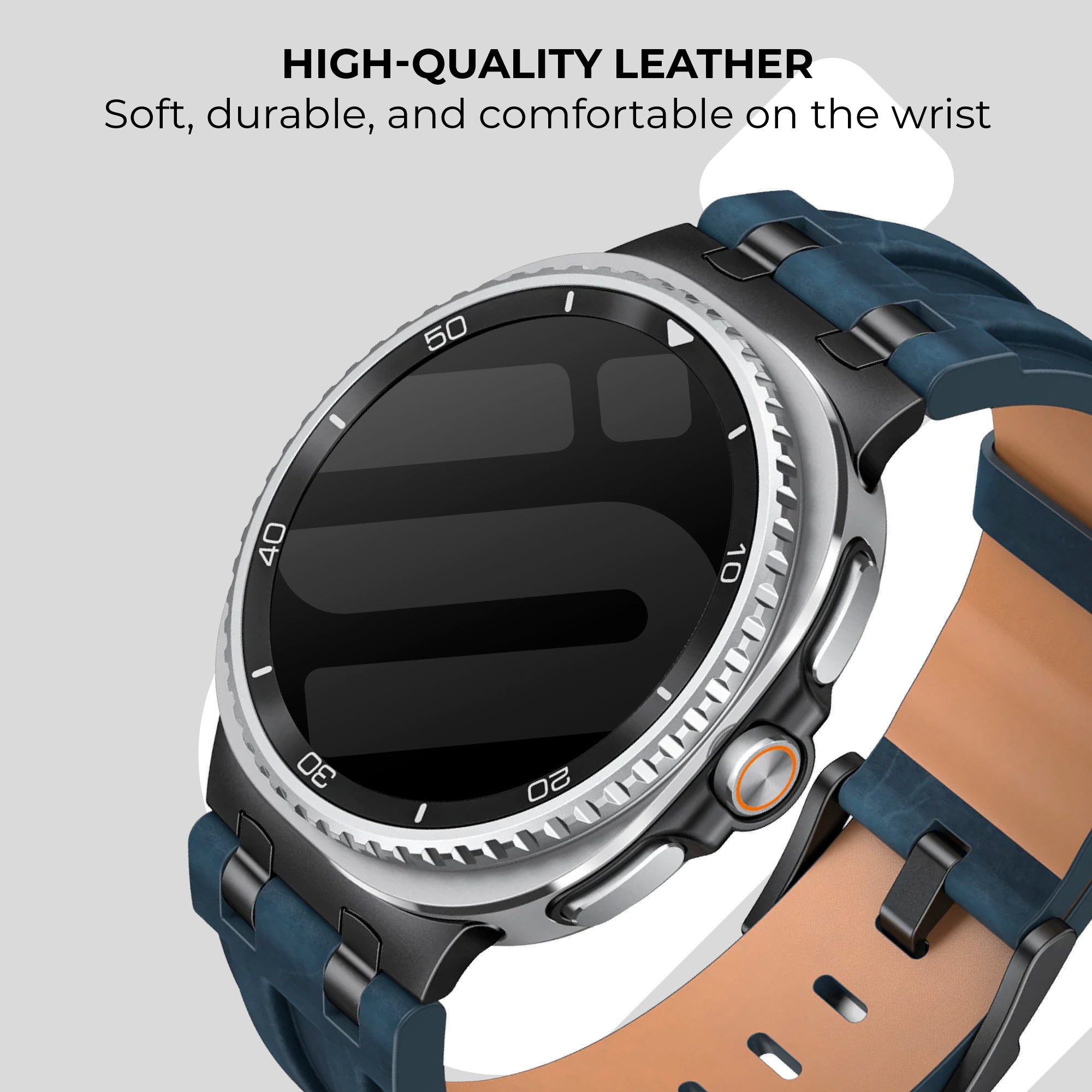Samsung Galaxy Watch 8 Classic Solid Leather Strap (Dark Blue)