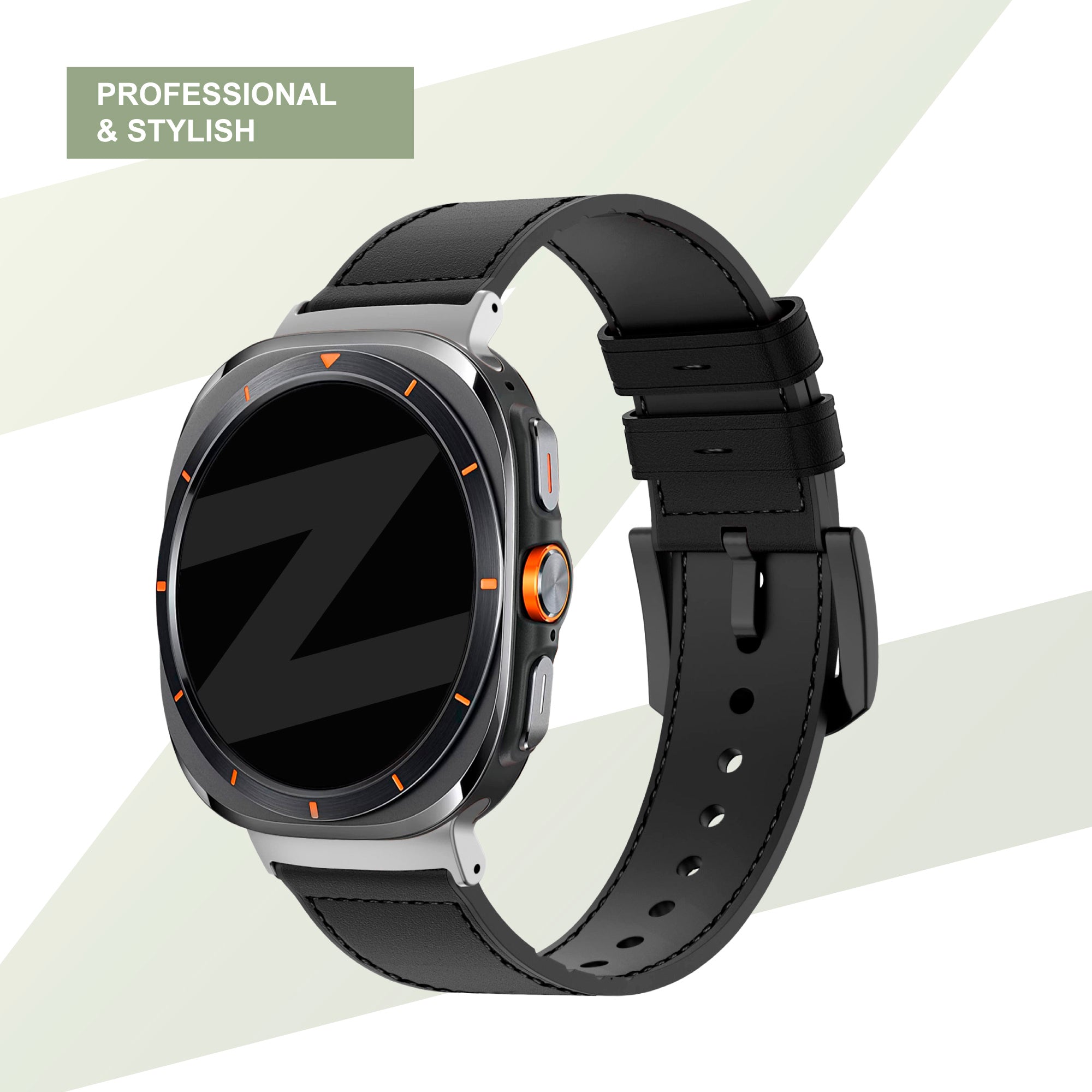 Bandz Samsung Galaxy Watch Ultra Leather Hybrid Strap with Buckle (Black)