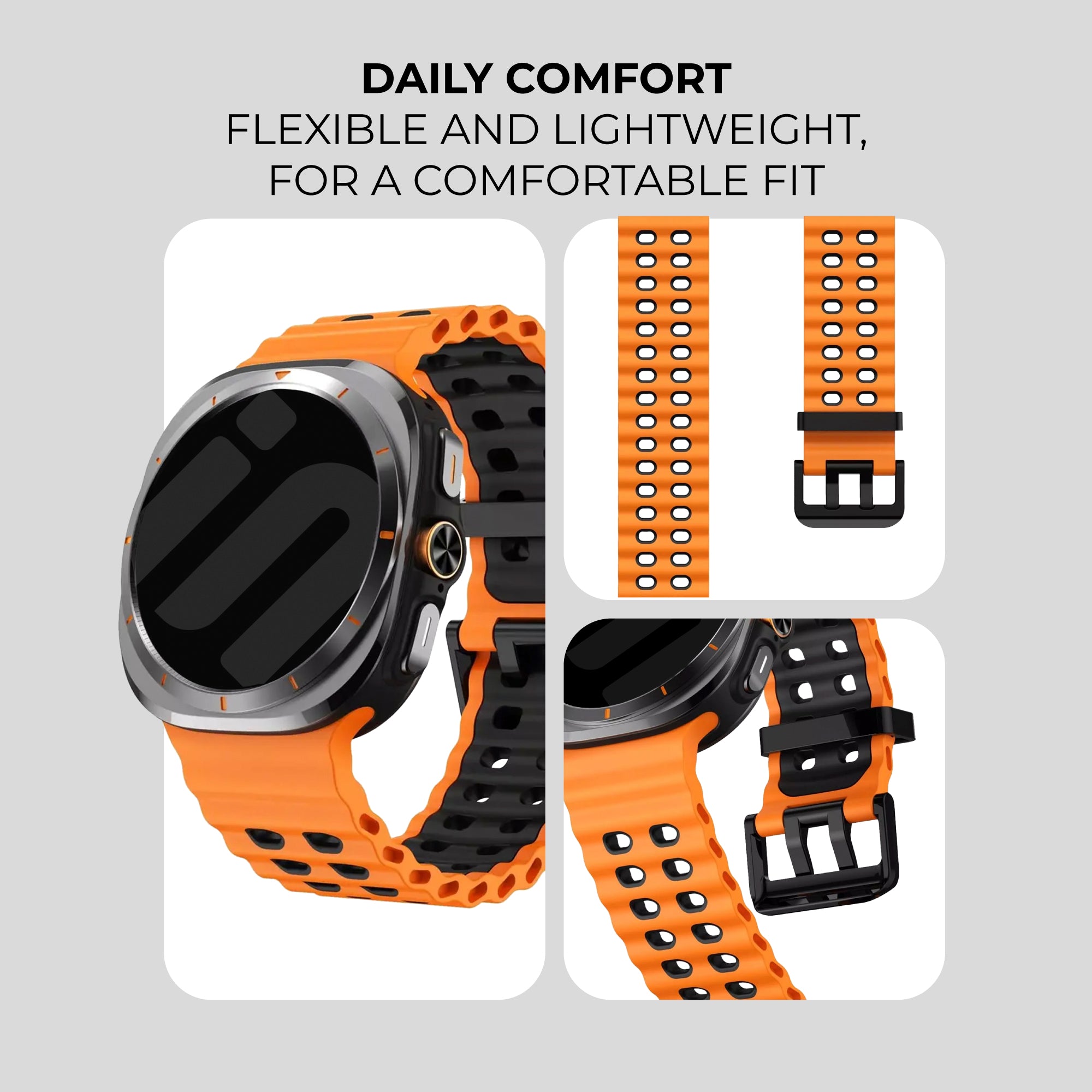 Samsung Galaxy Watch Ultra Wave Silicone Strap (Orange/Black)