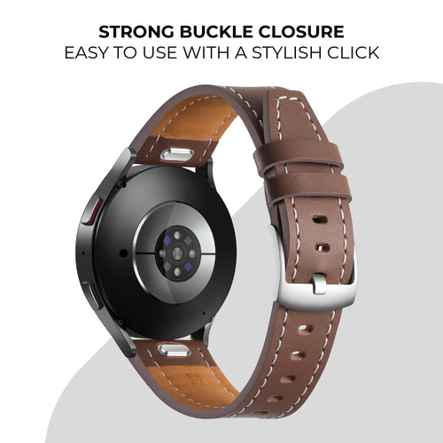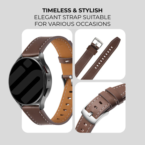 Elevate your smartwatch style with this elegant leather strap in dark brown. Its classic design makes it suitable for both casual and formal occasions.