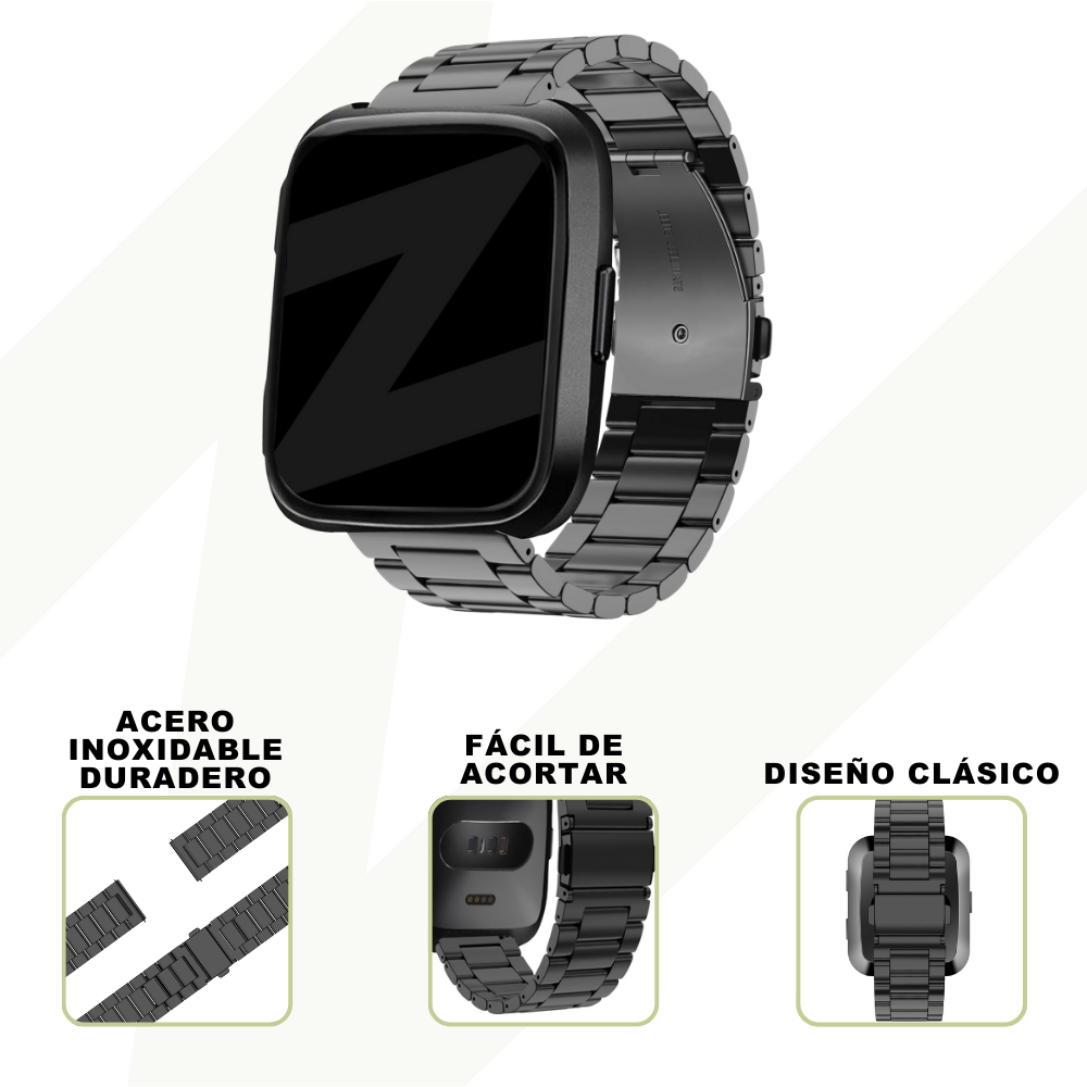 Bandz Correa acero 'Clásico' Fitbit Versa (negro)