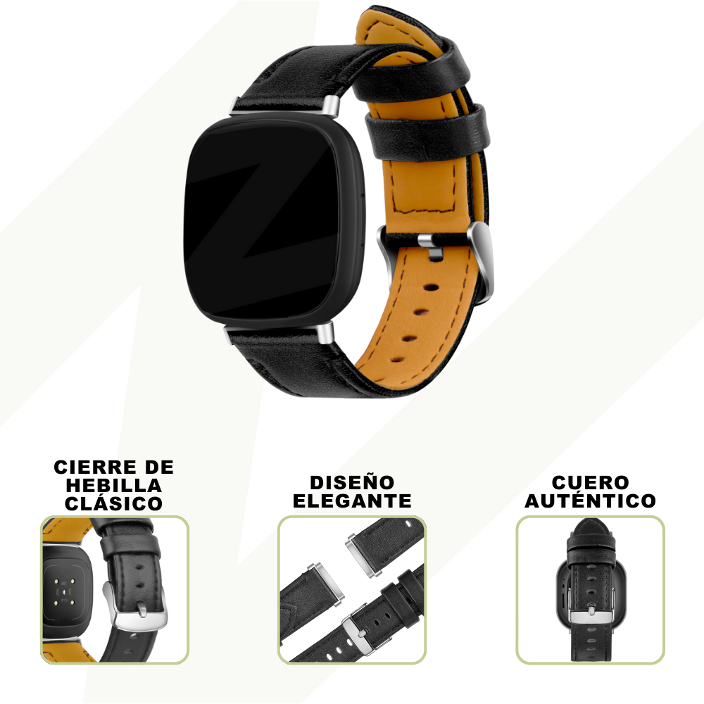 Bandz Correa cuero lujo Fitbit Versa 3 (negro)