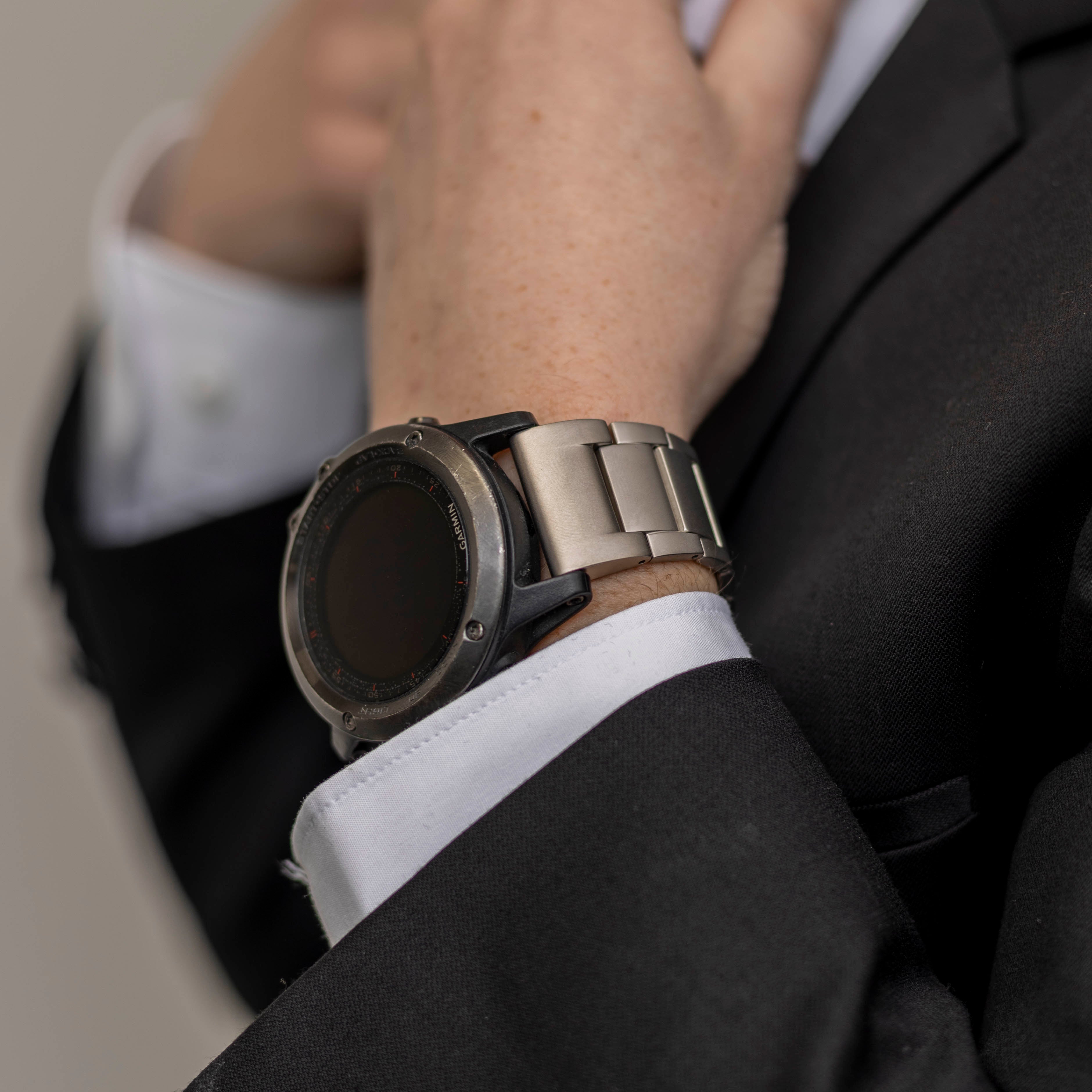 Las correas de titanio para el Quatix 3 / 6x / 7x Solar son hermosas correas que dan un aspecto verdaderamente elegante a su reloj. Son adecuadas tanto para ocasiones informales como formales. El material de titanio se parece al acero inoxidable en apariencia, pero tiene dos ventajas principales. El material es incluso más resistente que el acero, pero al mismo tiempo más ligero, lo que lo hace más cómodo de llevar. Los eslabones se pueden acortar para que se ajusten bien a la muñeca. Tenga en cuenta que el juego de herramientas para hacerlo no se incluye de serie. Elija entre cuatro colores de moda.