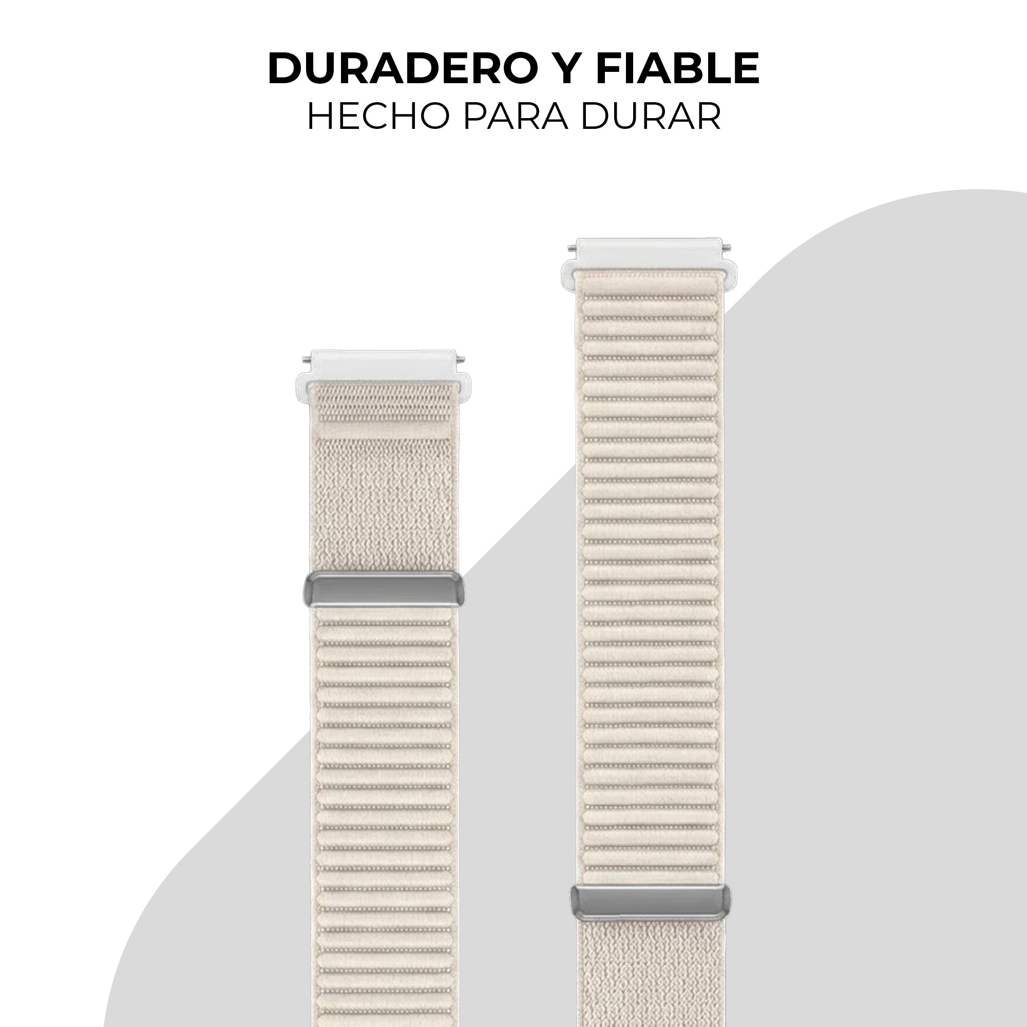 El nylon es muy duradero; la vida útil de la correa depende del uso. Lavar la correa ocasionalmente con agua tibia y dejarla secar al aire ayudará a mantenerla fresca y prolongar su vida útil.