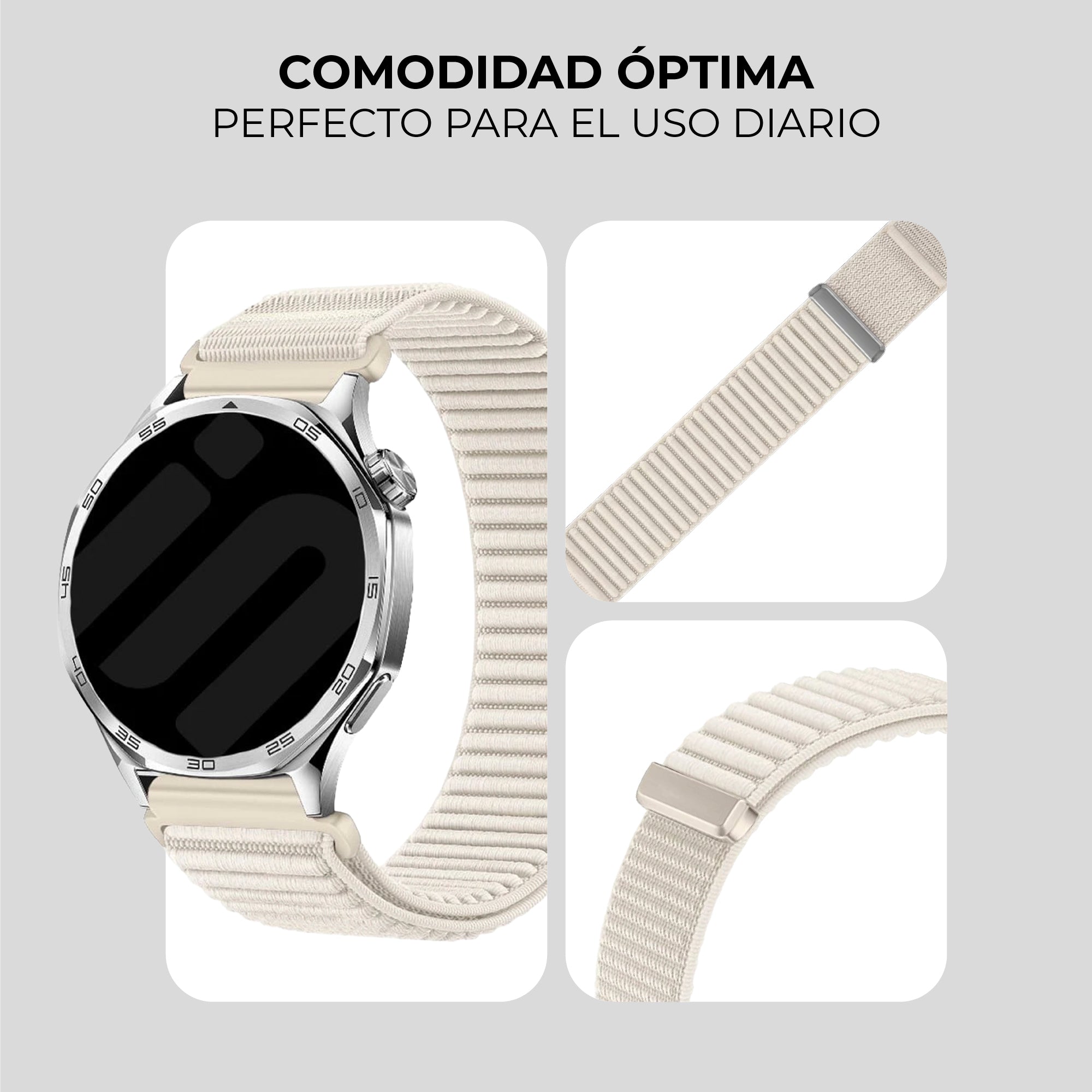 Las correas de nylon para relojes inteligentes suelen ser la mejor opción para el uso diario. Son las más cómodas para llevar durante largos periodos de tiempo y también se pueden usar para hacer deporte.