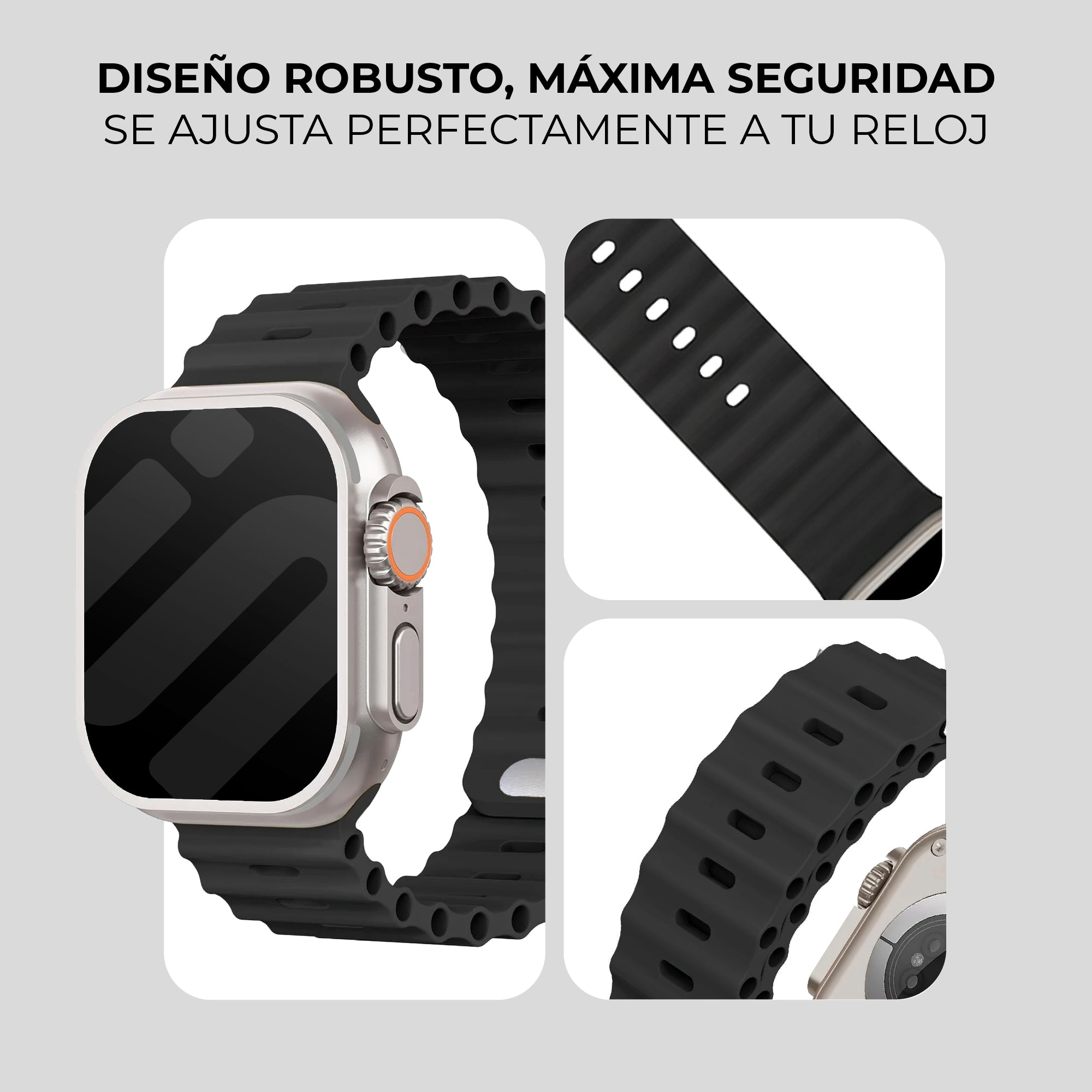 Correa Ocean para Apple Watch con cierre a presión (negro)