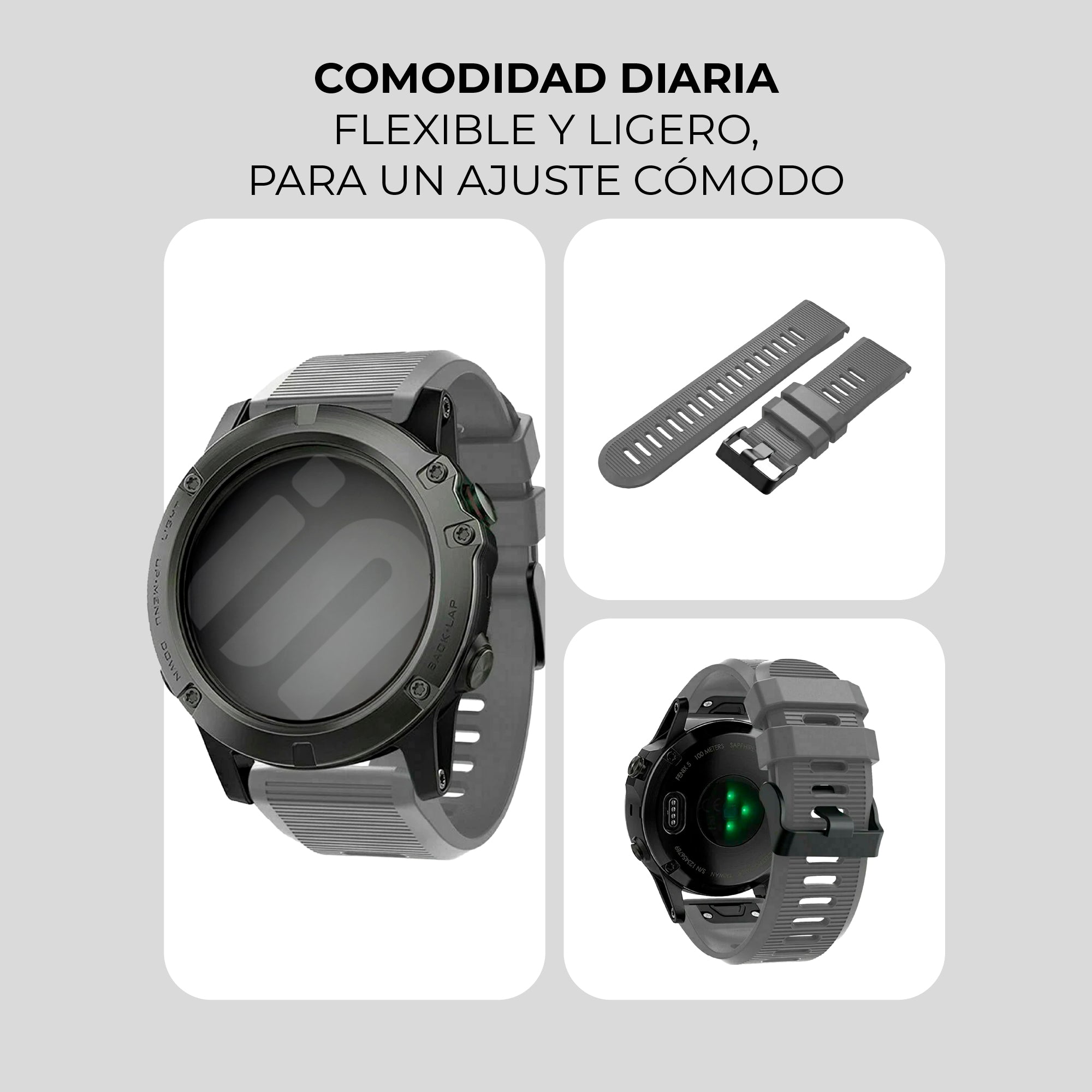 Correa de silicona gris para Garmin D2 Bravo