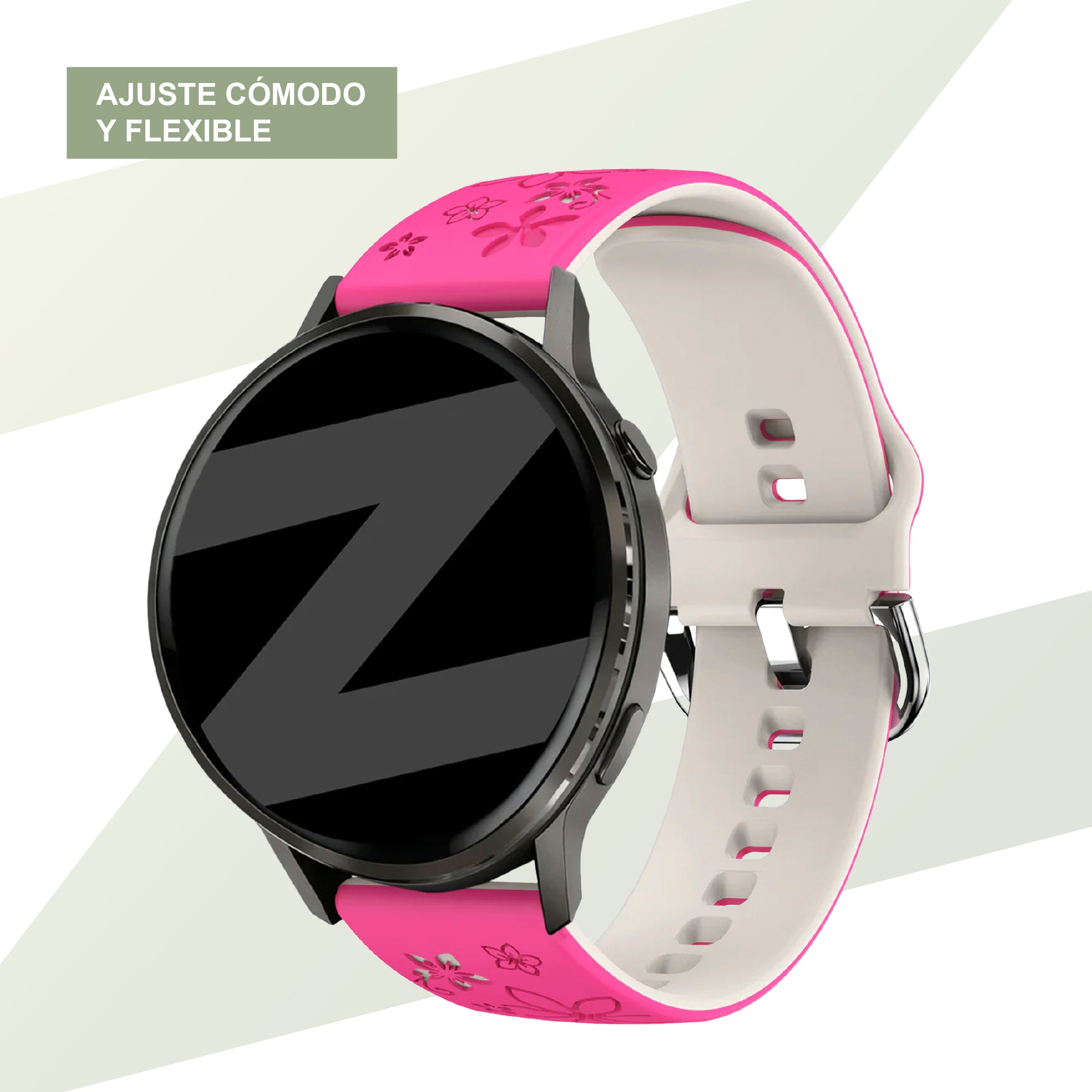 Bandz Correa silicona 'Flores' Garmin Vivoactive 3 (rosa brillante/blanco estrella)