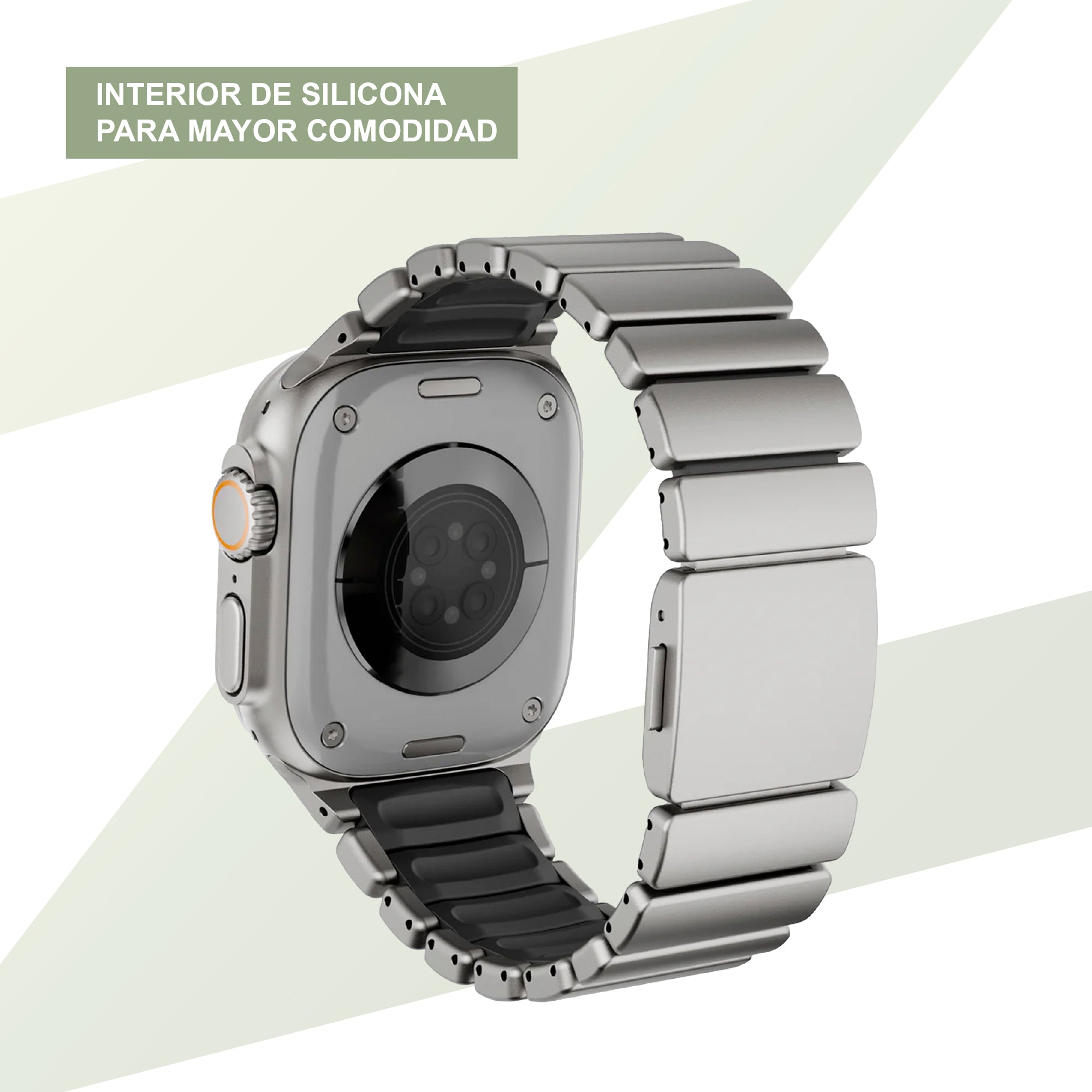 El titanio es una excelente opción para correas de reloj, ya que es muy ligero, extremadamente resistente y le da un aspecto clásico a tu reloj inteligente. Es la opción más premium para elegir en una correa de reloj inteligente.