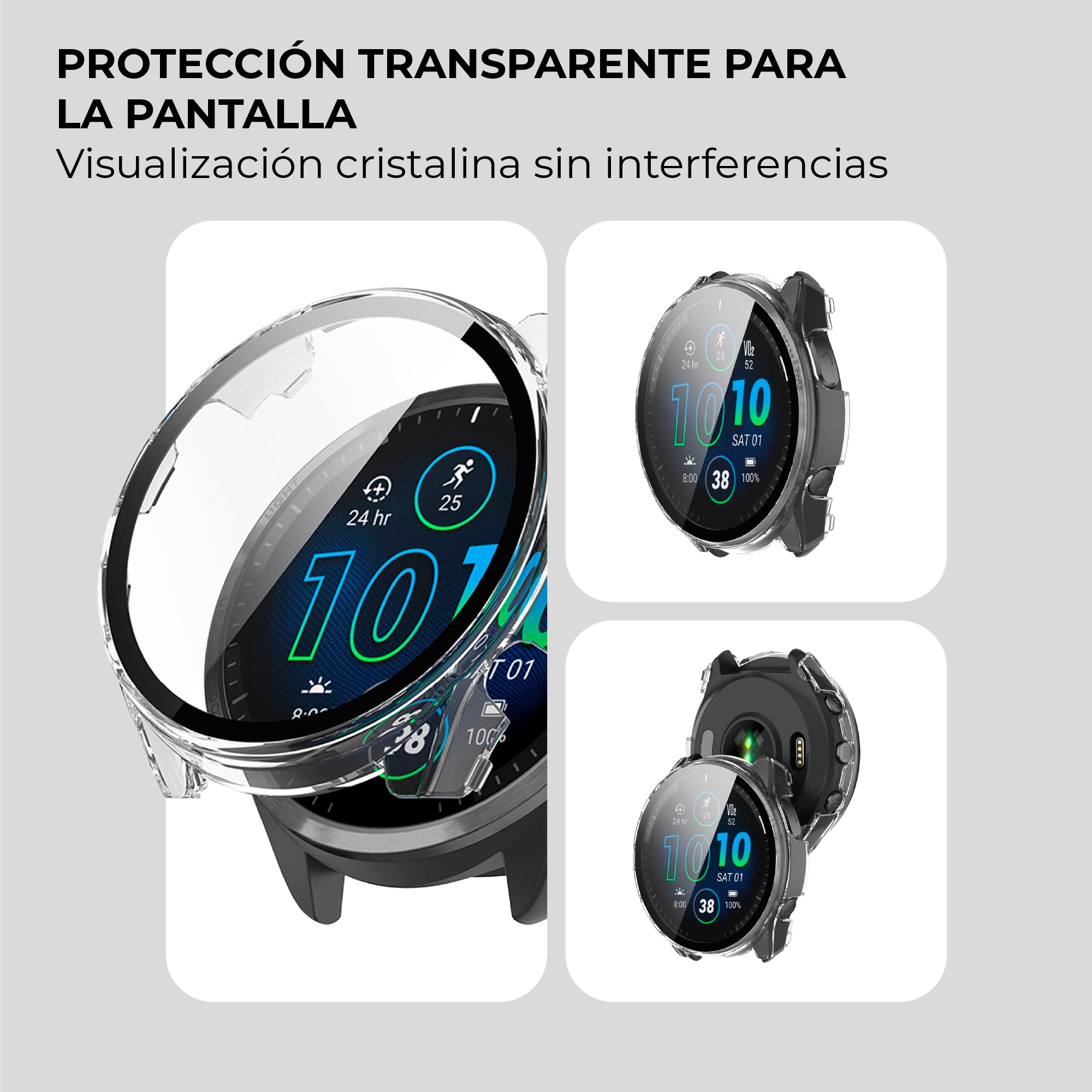 Funda rígida con vidrio Garmin Forerunner 965 (transparente)